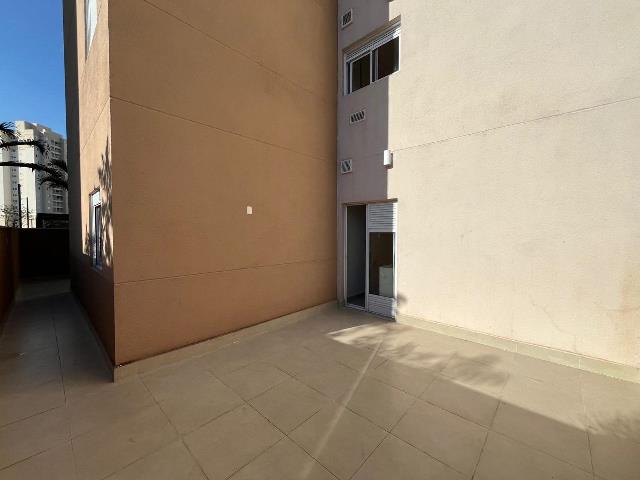 Apartamento no térreo com área privativa de 70m² e área total com quintal de 140m². Sala de estar, sala de jantar, cozinha, área de serviço, 2 dormitórios sendo 1 suíte, 1 banheiro social e 2 vagas de garagem. Portaria 24 horas e área de lazer completa.