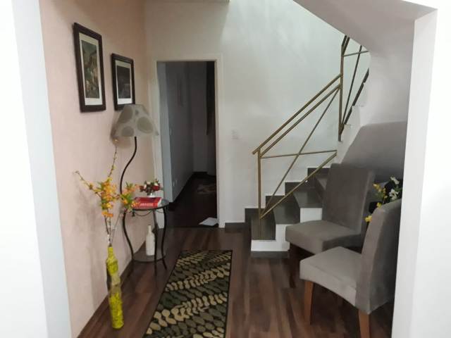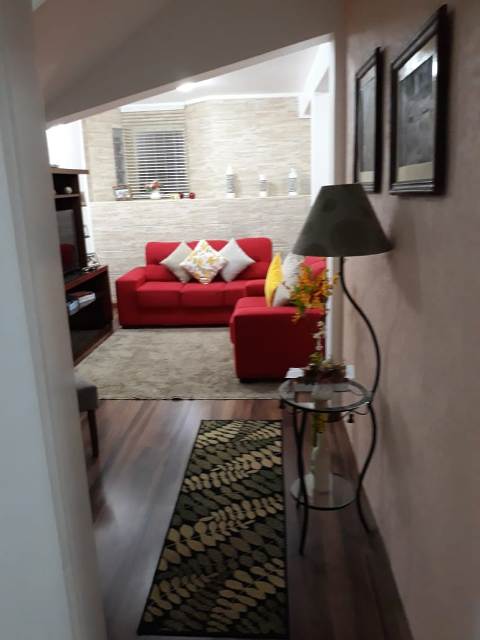 Possui 2 salas, 1 lavabo, cozinha, lavanderia, 3 dormitórios sendo 1 suíte com closet, área de churrasqueira coberta e 2 vagas de garagem.