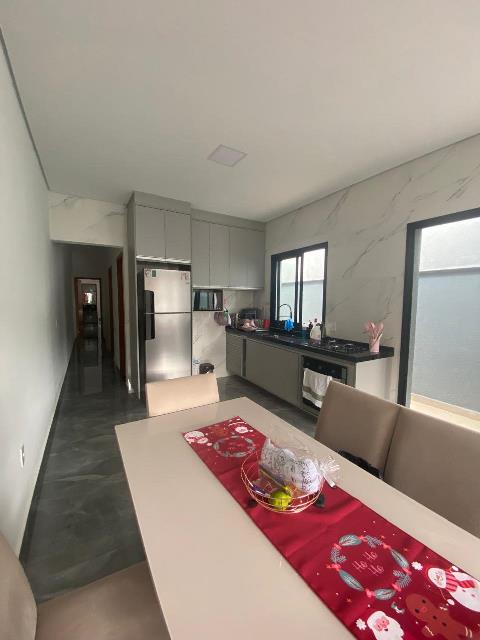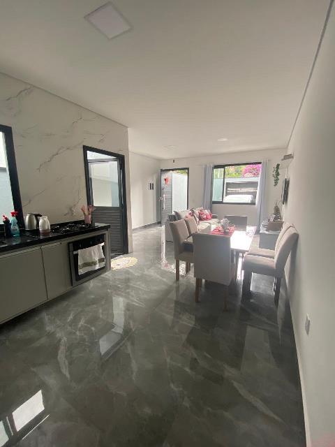 Com sala de estar, sala de jantar, cozinha, 1 banheiro social, 2 dormitórios sendo 1 suíte, quintal com lavanderia e 2 vagas de garagem.
