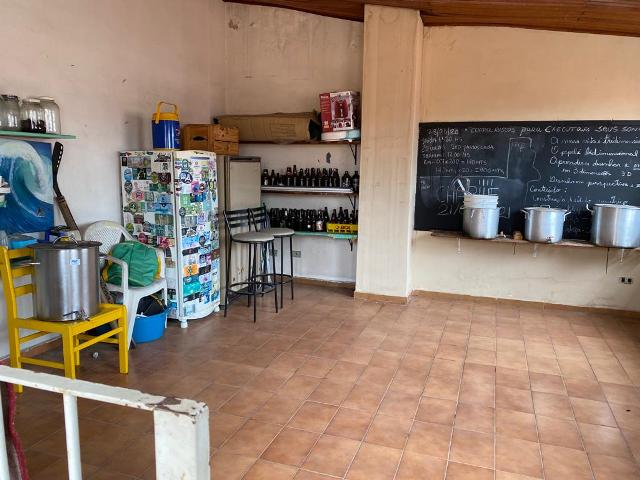 Edícula com lavanderia, 1 banheiro, 2 salões e churrasqueira.