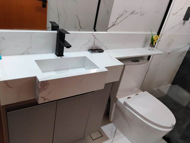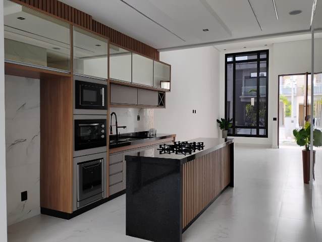 Com sala de estar, sal de jantar e cozinha integradas, lavabo, área de serviço, 3 suítes e 1 escritórioo.