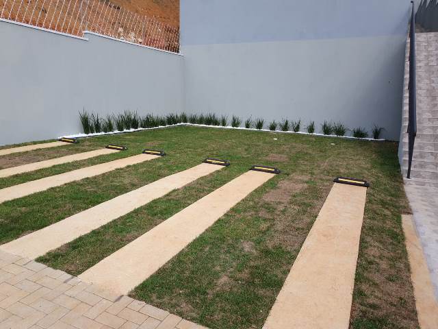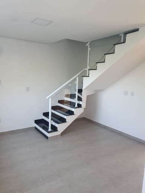 Piso inferior com sala de estar, sala de jantar, lavabo, cozinha,