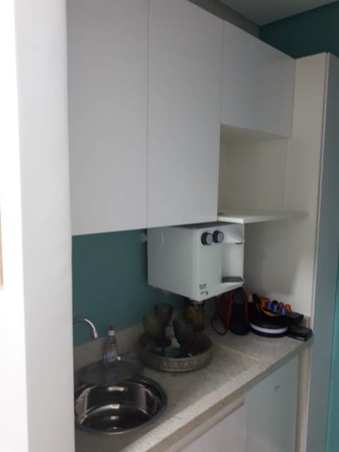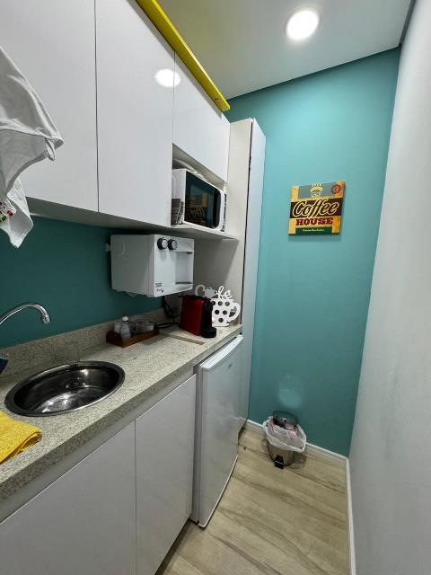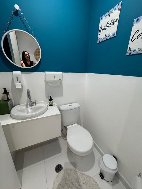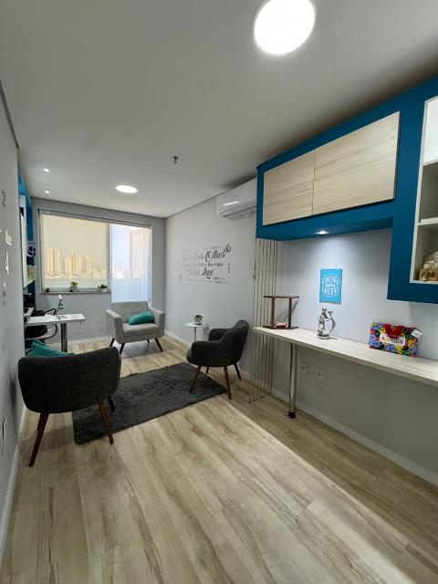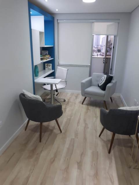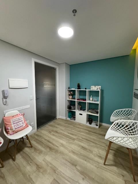 Sala comercial com área privativa de 46m². Possui recepção, sala de espera, 1 banheiro, copa, 2 salas de atendimento e 1 vaga coberta de garagem.