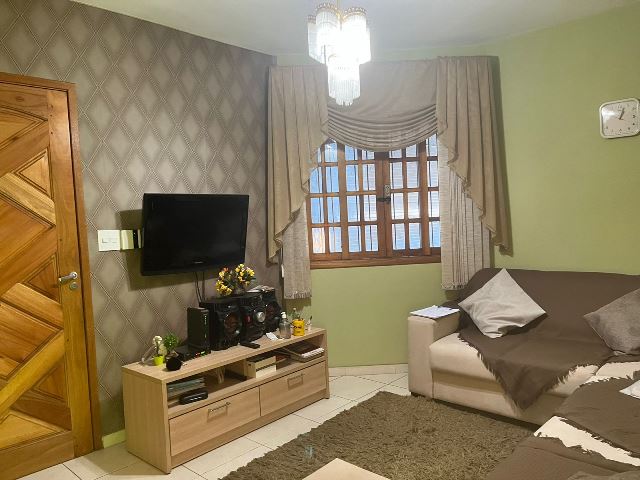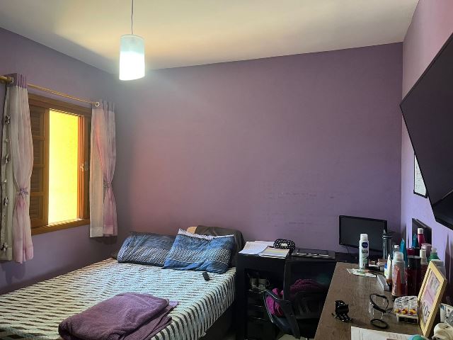 Possui sala de estar, sala de jantar, cozinha, lavanderia, 1 banheiro, 2 dormitórios sendo 1 suíte e 2 vagas de garagem.