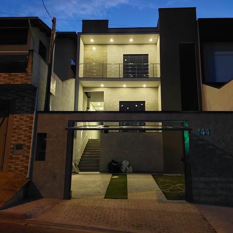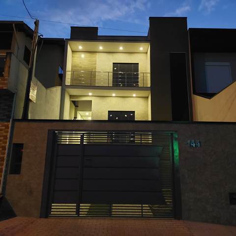 Sobrado com 141m² de área construída em terreno de 150m². Sala de estar e sala de jantar integradas com a cozinha, lavabo, área de serviço, área gourmet, quintal e 3 vagas de garagem. No piso superior são 3 dormitórios sendo 1 suíte mais 1 banheiro. Possui pontos de energia e hidráulica preparados para instalação de ofurô ou piscina aquecida,