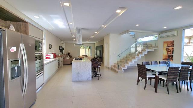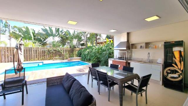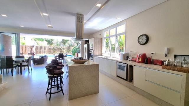 Possui sala 3 ambientes, copa/cozinha, área de serviço, 5 suítes, área gourmet com piscina e 4 vagas de garagem. Conta com aquecimento central a gás.