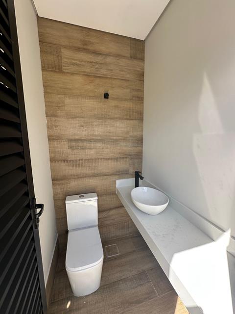 Sobrado com 191m² de área construída em terreno de 250m². Pavimento térreo com 4 vagas sendo 2 cobertas, hall com pé direito duplo, lavabo, sala de estar, sala de jantar com coxinha integrada, despensa, área de serviço coberta, espaço gourmet integrado, piscina e banheiro externo. Pavimento superior com 3 suítes sendo 1 master com 2 pias e 2 chuveiros e 1 escritório.