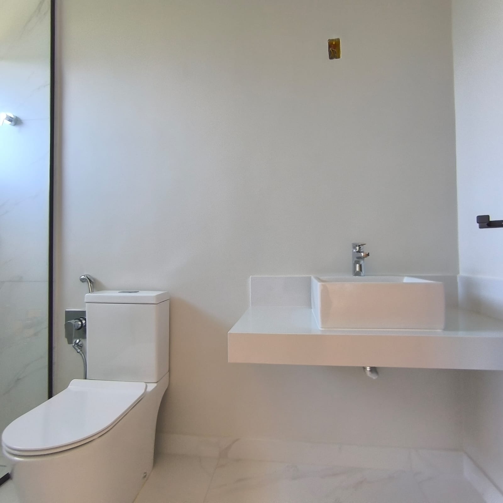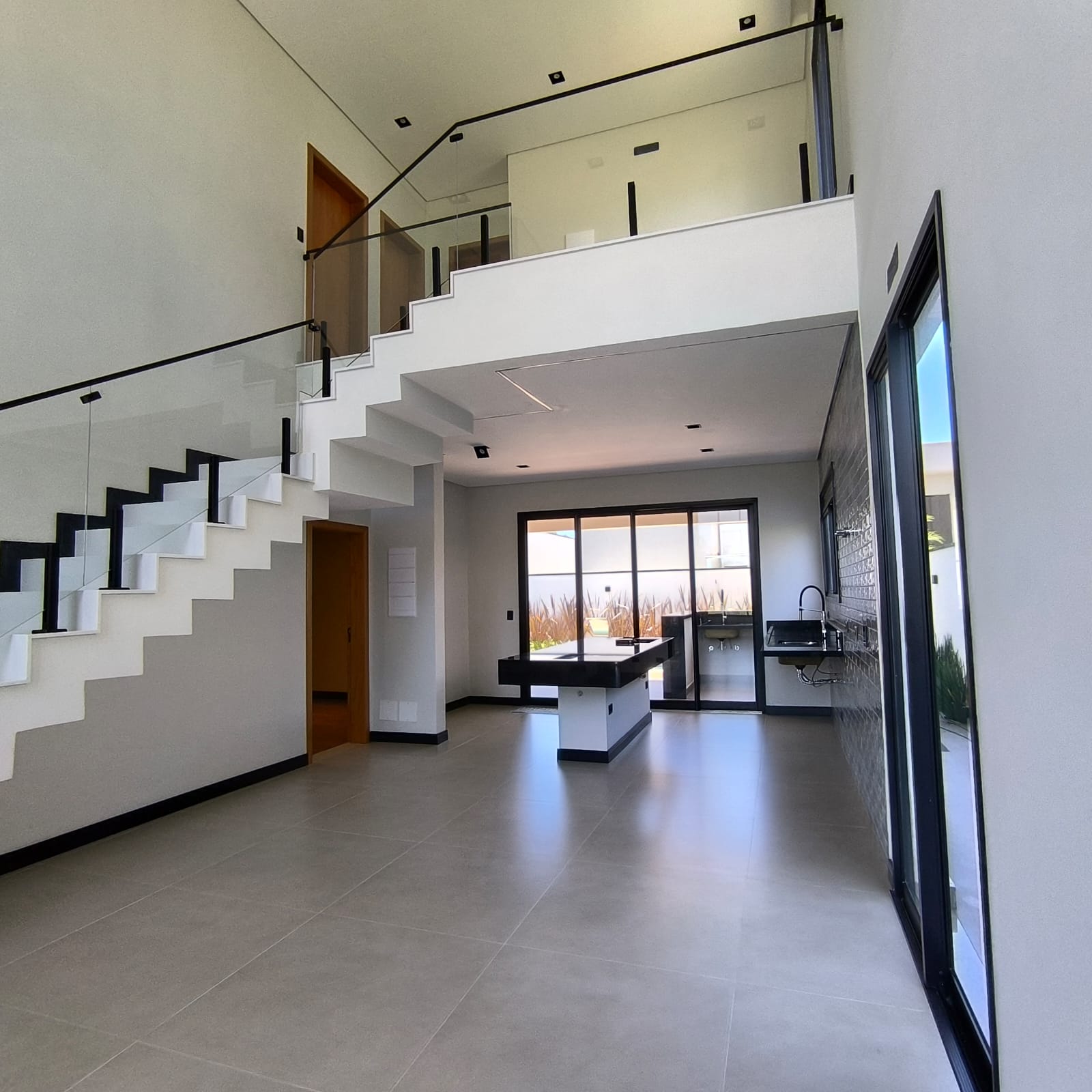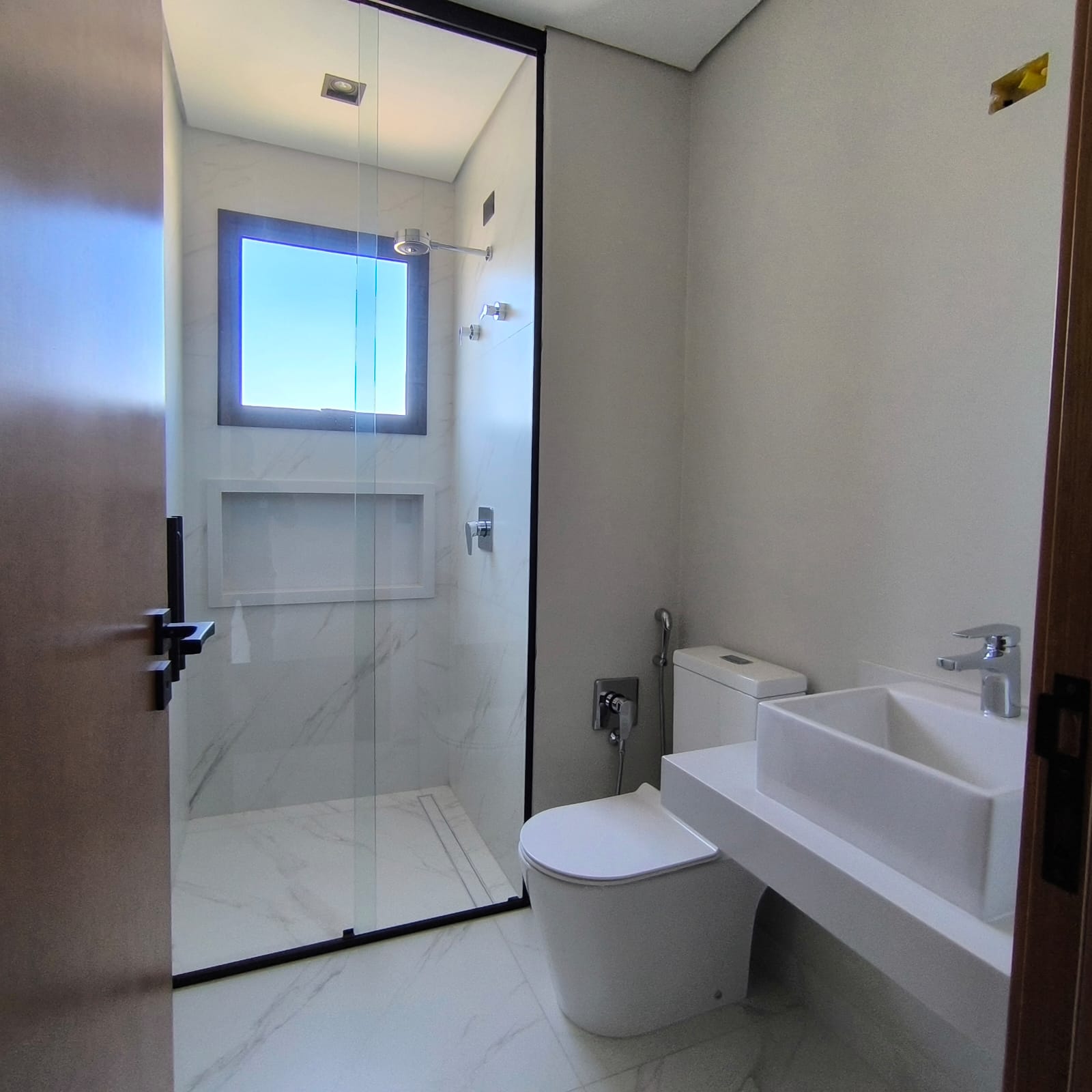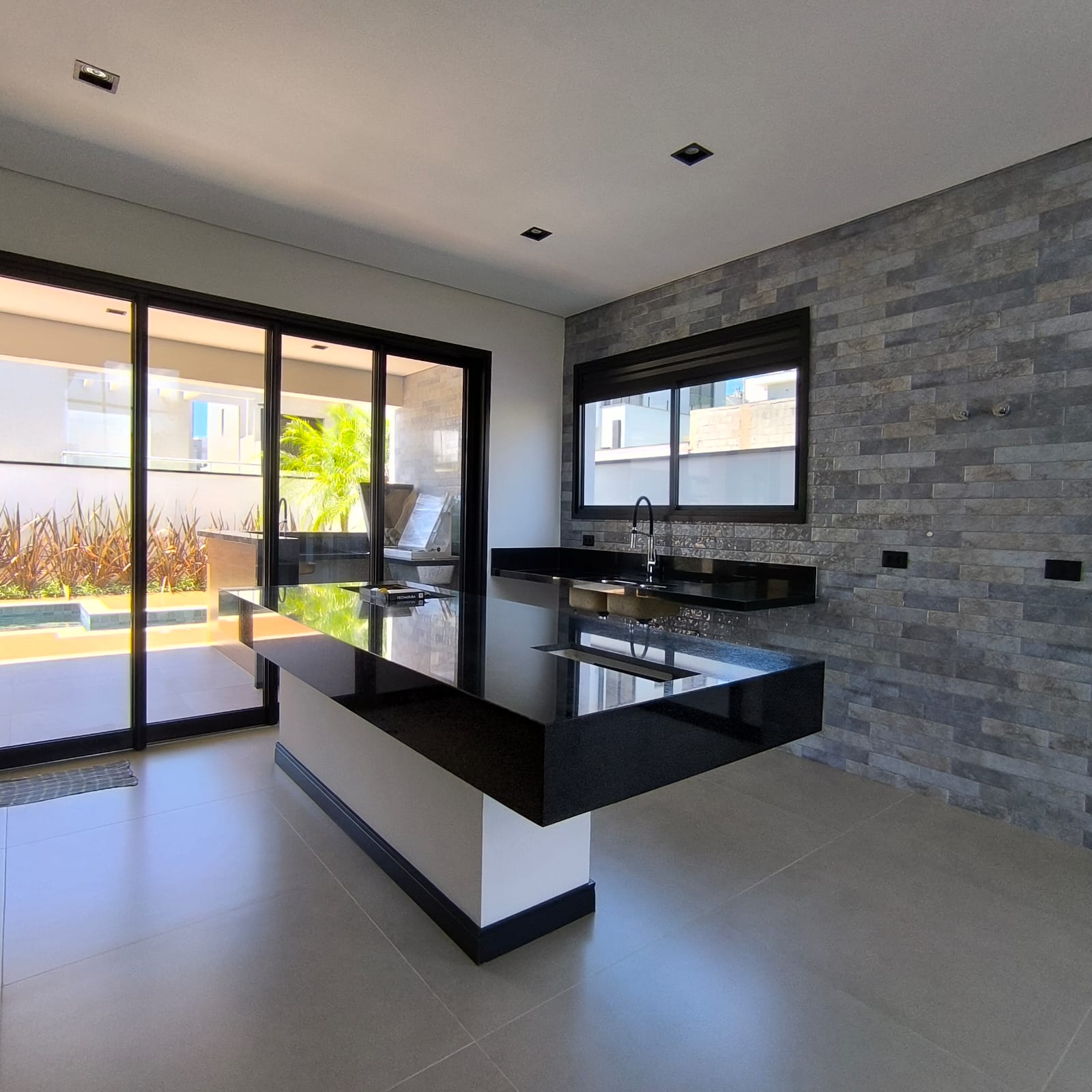 Possui sala de estar, sala de jantar, lavabo, cozinha, área de serviço, sala íntima, 4 suítes sendo 1 no piso inferior, área gourmet, piscina, banheiro na área externa e 4 vagas de garagem sendo 2 cobertas.