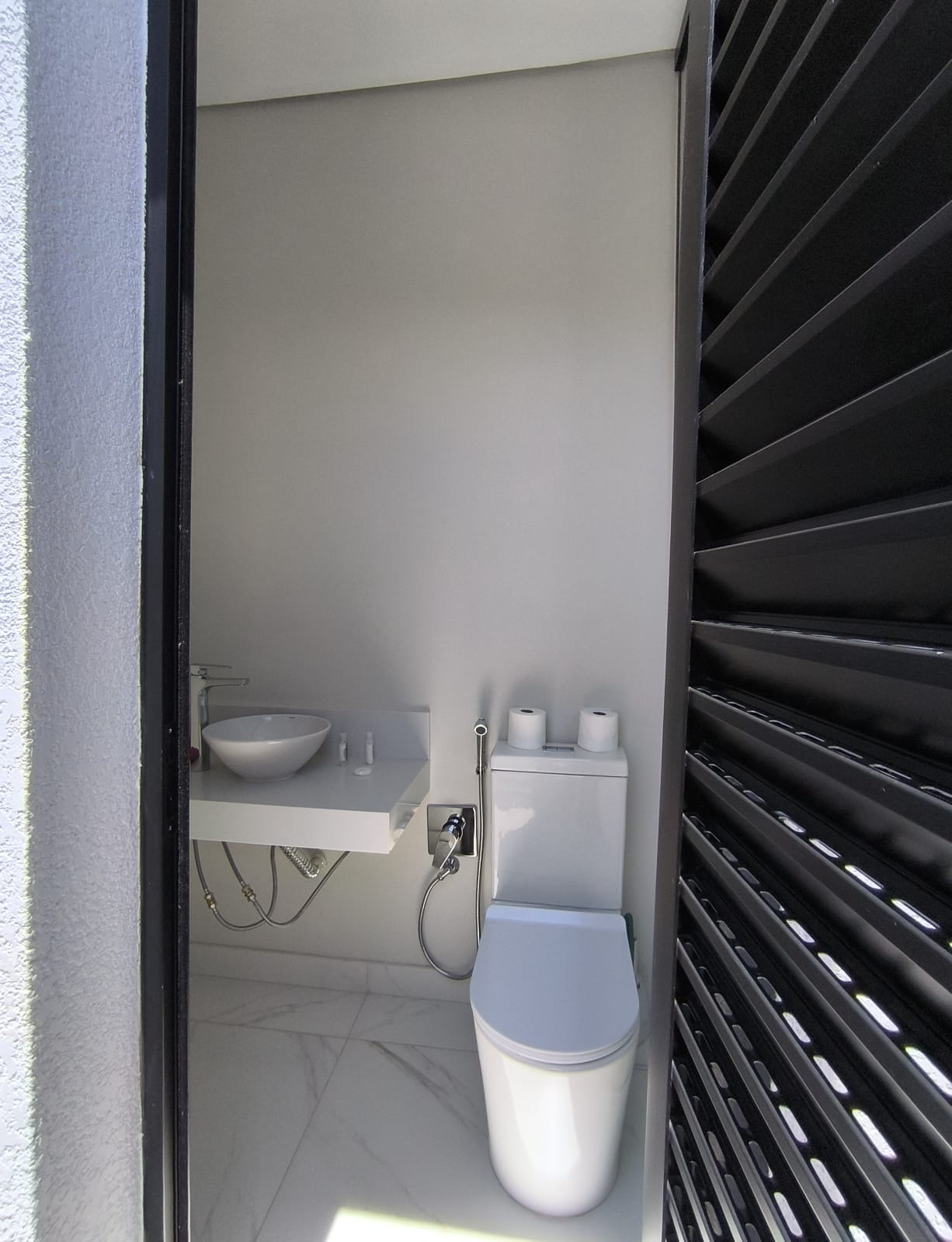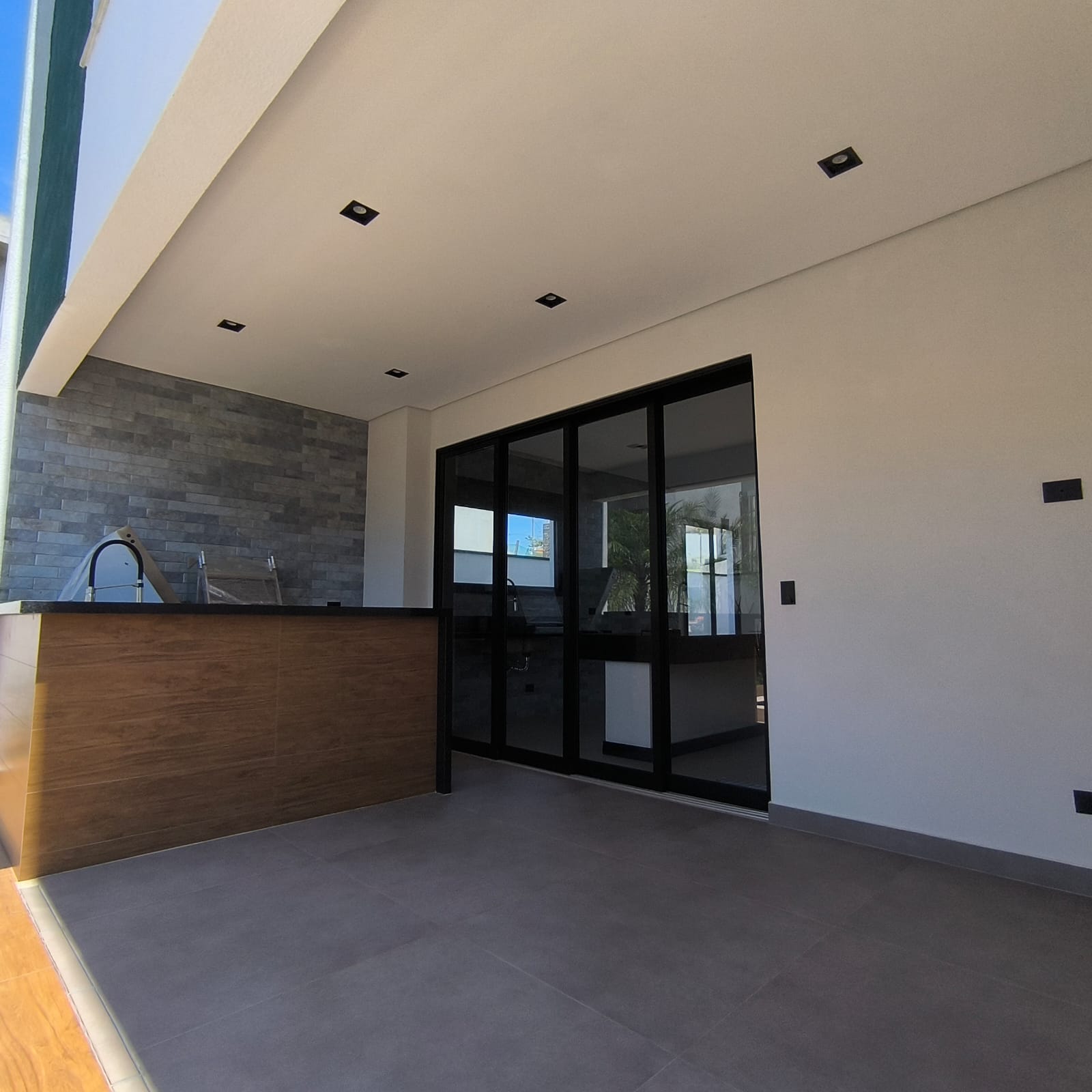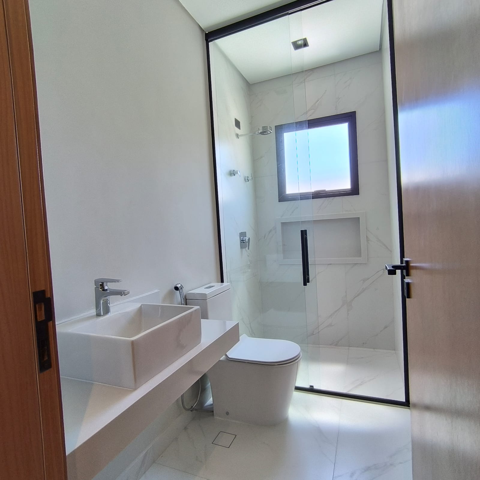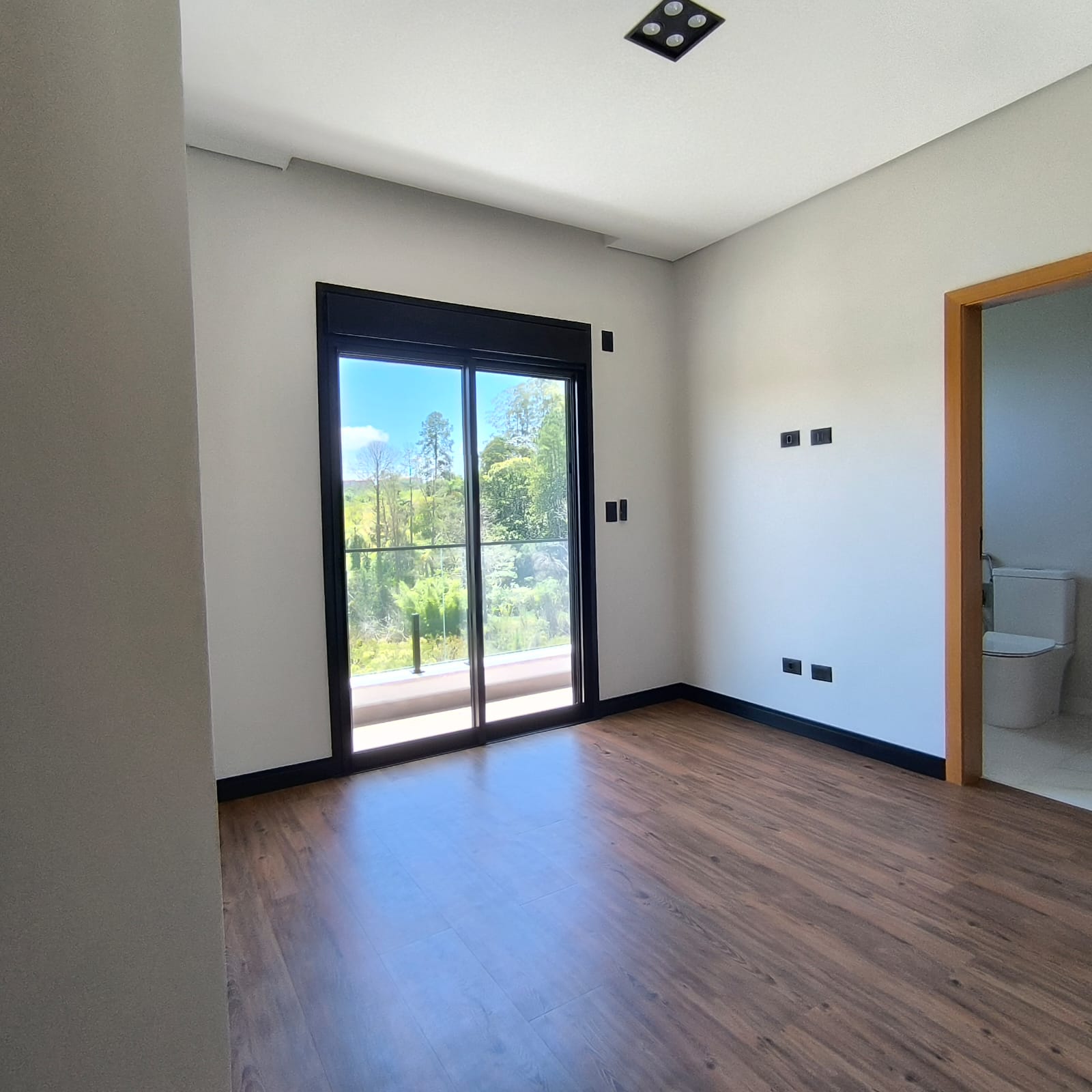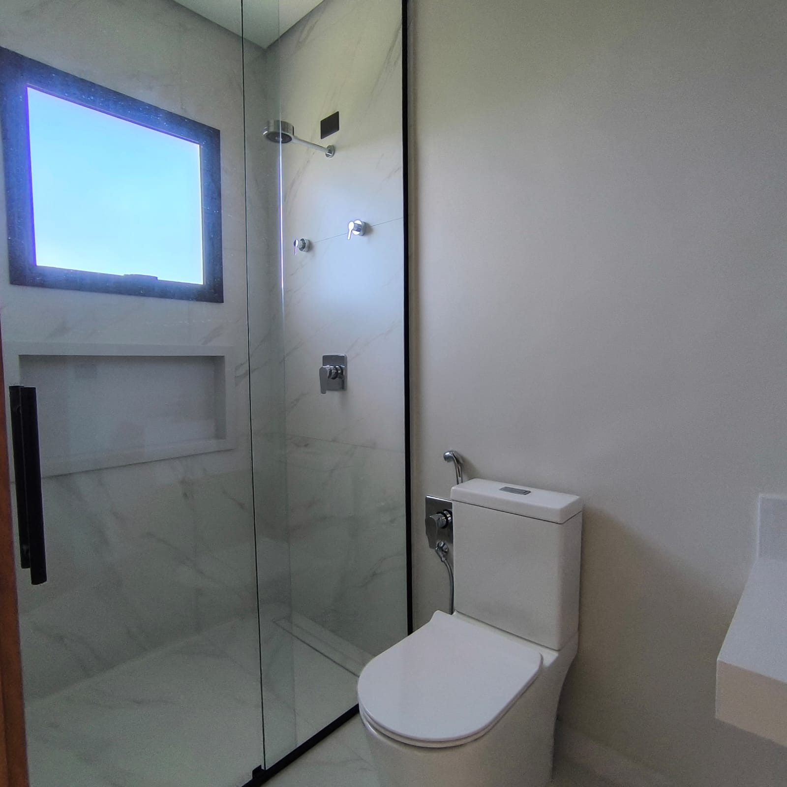 Possui sala de estar, sala de jantar, lavabo, cozinha, área de serviço, sala íntima, 4 suítes sendo 1 no piso inferior, área gourmet, piscina, banheiro na área externa e 4 vagas de garagem sendo 2 cobertas.