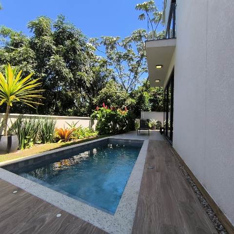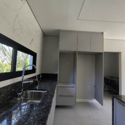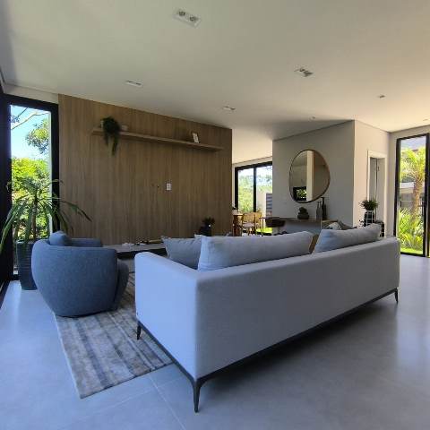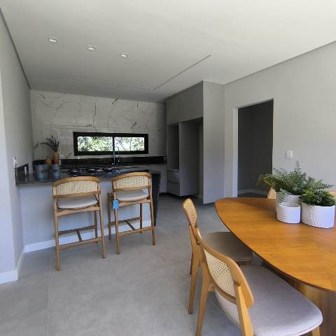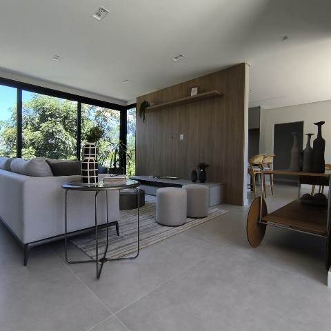 Possui sala de estar, sala de TV, lavabo, sala de jantar com varanda, cozinha, despensa, espaço gourmet, piscina, banheiro externo, ducha externa, área de serviço, sala íntima, 3 suítes e 4 vagas de garagem sendo 2 cobertas.